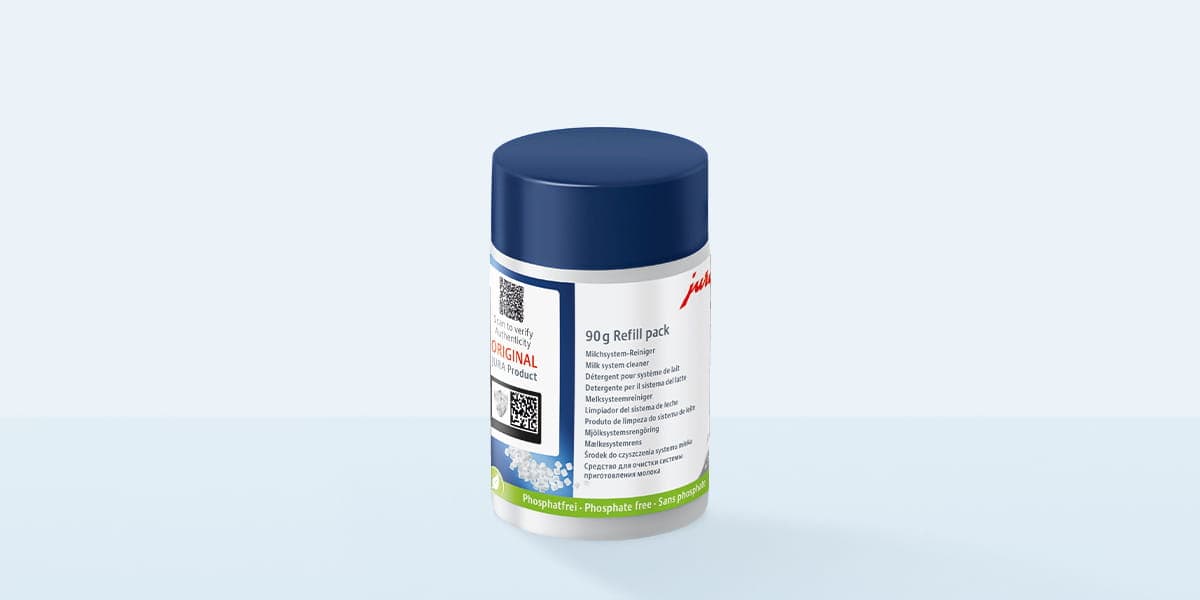 kaltaisista erikoiskahvijuomista, joiden laatu on erinomainen. Jotta tämä olisi jatkossakin mahdollista, olemme kehittäneet maitojärjestelmän puhdistusaineen, joka on saatavilla minitablettien muodossa. Yhdessä automaattisen puhdistusohjelman kanssa tabletit poistavat tehokkaasti maidon rasvat ja proteiinit. Tällä putket pidetään puhtaina ja hygieenisinä, jotta voidaan valmistaa maitovaahtoa, joka on jatkuvasti hienoa ja höyhenenkevyttä.