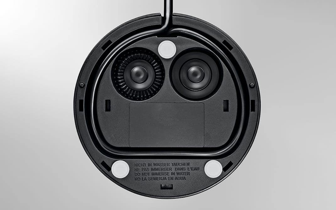 Vesijohto ja liittimet voidaan säilyttää helposti jalustassa. Mittojen ollessa vain 13 x 21 cm, automaattinen maidonvaahdotin sopii täydellisesti mihin tahansa keittiön kaappiin.