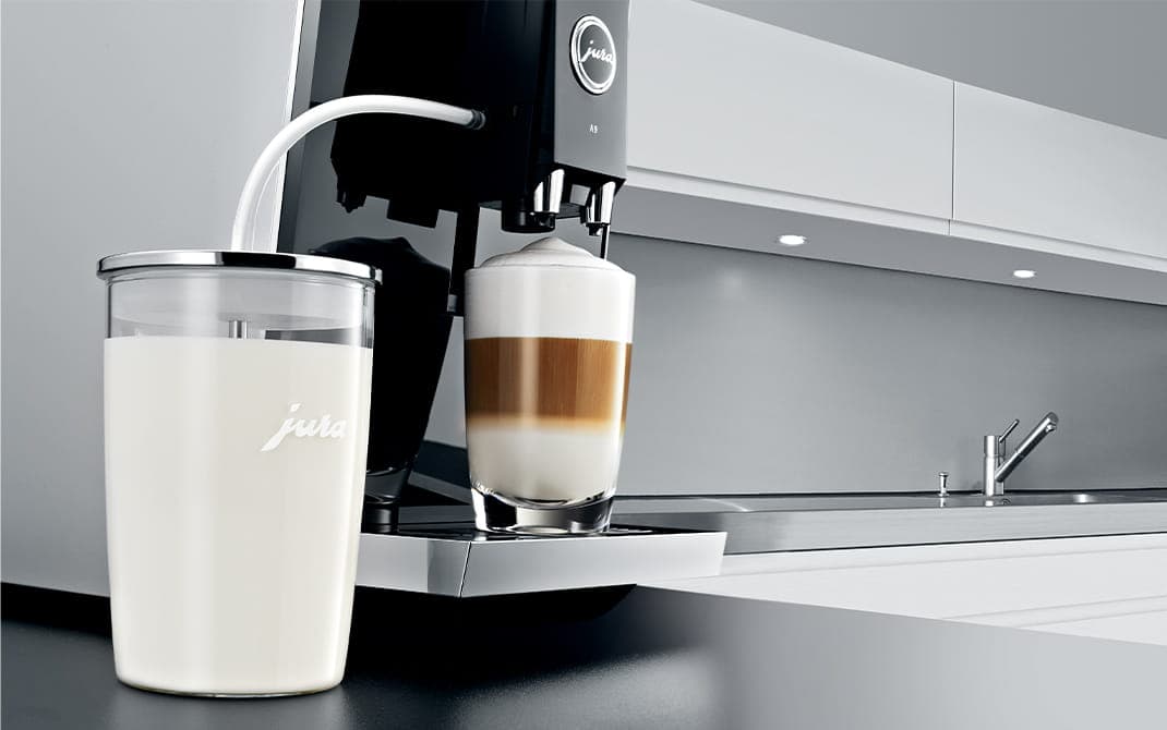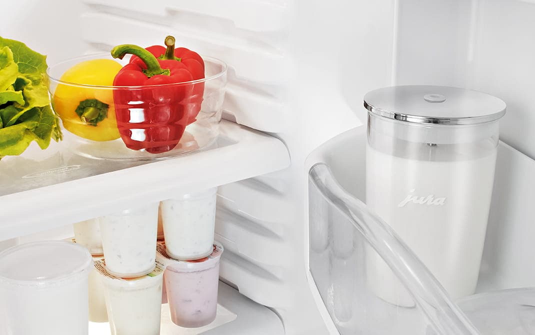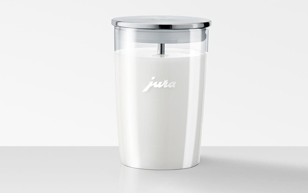 Lasinen maitosäiliö on tarpeellinen lisävaruste jokaiselle kahvinystävälle, joka haluaa hemmotella perhettään ja ystäviään aina silloin tällöin trendikkäällä flat whitella, latte macchiatolla tai cappuccinolla. Säiliö sopii täydellisesti yhteen JURAn muotoilulle tyypillisten linjojen kanssa; sitä on helppo säilyttää jääkaapissa ja sitten tarvittaessa liittää kahvikoneeseen. Maitoputki yhdistetään juuri oikealla korkeudella, jotta maito voidaan vetää sisään ja vaahdottaa helposti. Säiliön tilavuus on 0,5 litraa, ja sen voi pestä astianpesukoneessa.